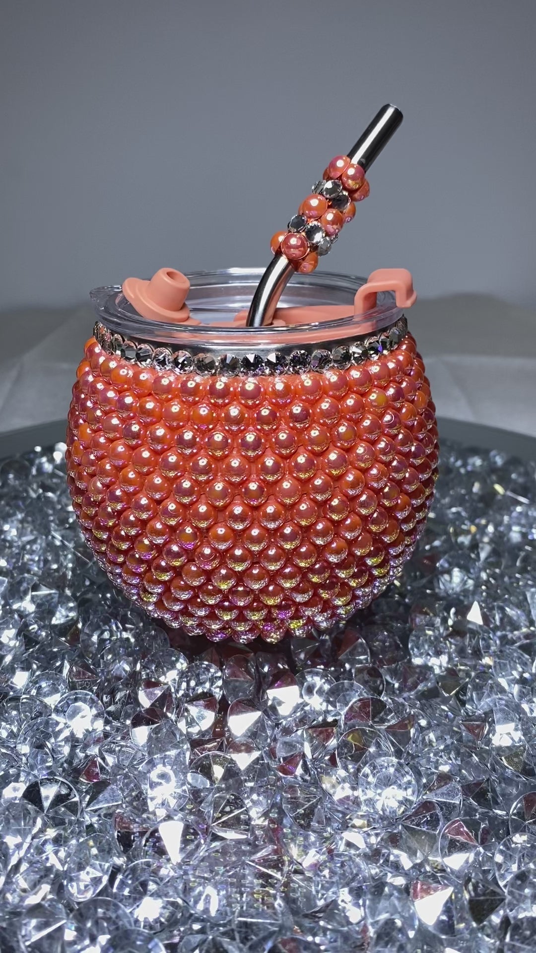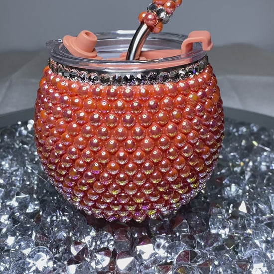 5oz Salmon bubble ball tumbler with straw. Hand placed glass crystals and resin pearls. Great party starter for your favorite events anf gift giving.